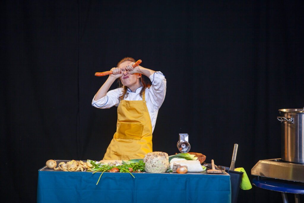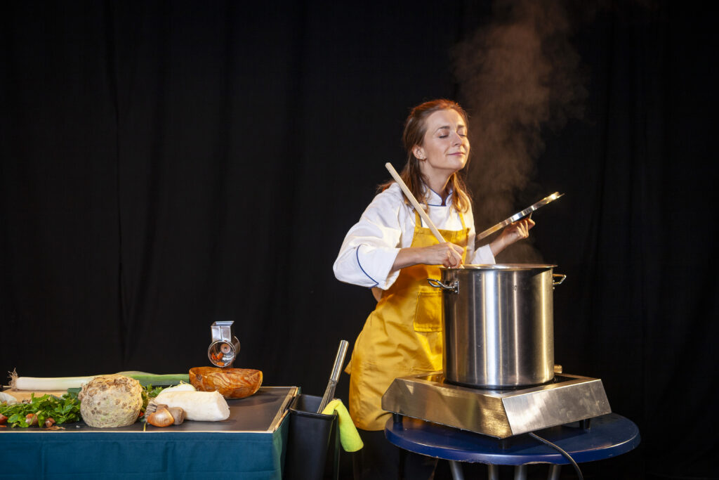 Über Ernährung, Hunger und den weiteren Fortgang von Friedas Geschichte können sich die Köchin und das Publikum bei einer gemeinsamen Schüssel austauschen.